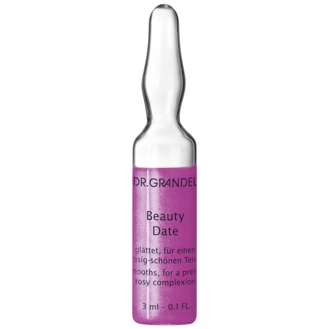 Die 'Beauty Date' Ampulle verfeinert das Hautbild, sorgt für einen rosig-schönen Teint und glättet Mimikfältchen.