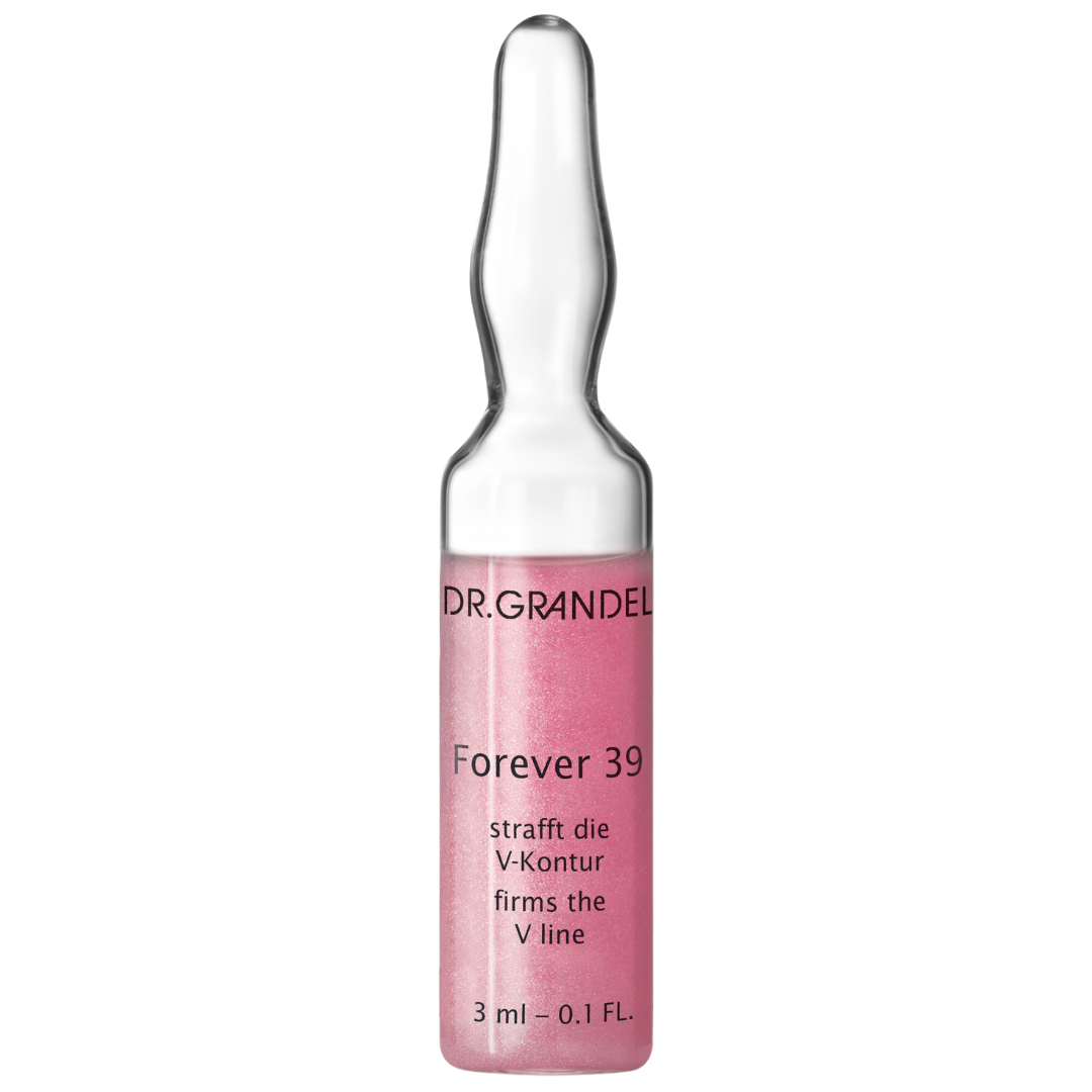 Das straffende Wirkstoffkonzentrat der 'Forever 39' Ampulle sorgt für eine gefestigte Gesichtskontur und neue Spannkraft. Es stärkt und schützt langanhaltend die kollagenen und elastinen Fasern der Haut. Enthält Rubin, ein feuriger Edelstein mit grosser Strahlkraft! 39 forever?