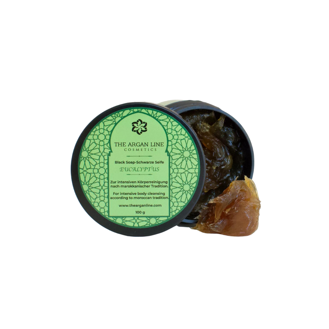 Die Black Soap Eucalyptus ist der Klassiker unter den schwarzen Seifen. Die Paste basiert auf Oliven und ist angereichert mit Eukalyptusextrakt. Dieses hilft Unreinheiten an die Hautoberfläche zu bringen, damit diese mit einem Peeling Handschuh entfernt werden können. Dafür ist der Hammam Glove von The Arganline gedacht. In Marokko ist die schwarze Seife seit mehreren hundert Jahren ein wesentlicher Bestandteil des Hammam Rituals. Sie können die Seife in der Dusche oder noch besser: im Bad anwenden.